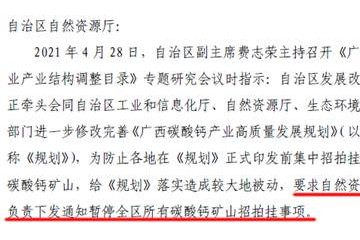 置頂重磅!即日起,廣西暫停全區所有碳酸鈣礦山招拍掛,已形成賀州、來賓、河池、玉林四大產業集群