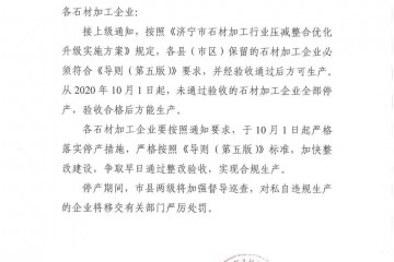 汶上縣石材加工行業轉型升級工作領導小組通知各石材加工企業:接上級通知,按照《濟寧市石材加工行業壓減整合優化升級實施方案》規定,各縣(市區)保留的石材加工企業必須符合《導則(第五版)》要求,并經驗收通過后…