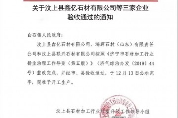 置頂山東銹石產地關于汶上縣三家企業驗收通過的通知