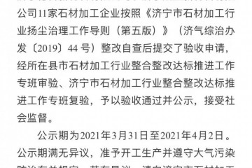 山東汶上縣2家石材加工企業達標驗收公示