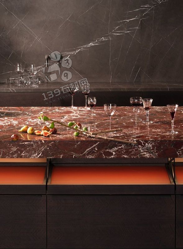 紫羅紅大理石,一種自帶浪漫與貴氣的天然石材,因其獨特的粉紅色澤與細膩紋理,成為設計師手中的“點睛之筆”。然而,受限于其色彩濃烈、紋理不規則的特性,大面積鋪陳易顯視覺疲勞,反而以局部點綴的方式更能凸顯其高級感。本文將結合實際案例,解析紫羅紅大理石在桌面、背景墻、浴室等場景中的巧妙應用,帶你解鎖它的“低調奢華”之道。