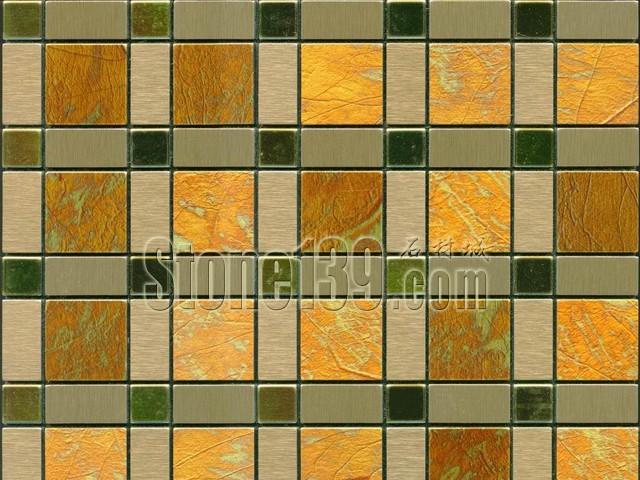 拋光表面的馬賽克拼花塊可以直接從光板的邊腳料中切割獲取。而亞光或毛面的拼花塊則需要進行毛面處理。首先將1-2cm厚、不同顏色的廢棄板材邊角切割成正方形、矩形、三角形、菱形、或其他可作為拼花的基本形狀的規則拼花塊,放入滾筒中。當滾筒旋轉時,板材之間相互摩擦,最終形成形狀規則、邊角圓滑、表面亞光、磨損程度一致的毛面拼花塊。