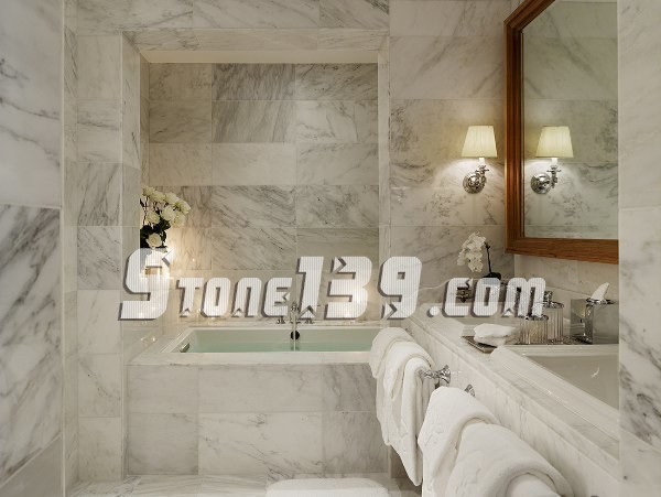 直紋白(馬爾馬拉白)是一種獨特的大理石,就像上面例子,水平平衡的大理石組合展示一個現代化的精致浴室,其優雅的氛圍讓你的家看起來像一個豪華酒店。