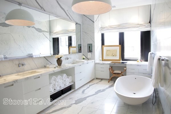 整個衛(wèi)生間的應(yīng)用全由石材打造,天然的石材紋路對比其他材料裝飾衛(wèi)生間多了一份生氣,少了一些呆板,自然和諧的美在衛(wèi)生間整體效果應(yīng)用上完美體現(xiàn),最后,小編也想有一天給自己裝飾這樣的衛(wèi)生間,不過前提是先得有別墅或者大套房才可以有如此寬大衛(wèi)生間哈。