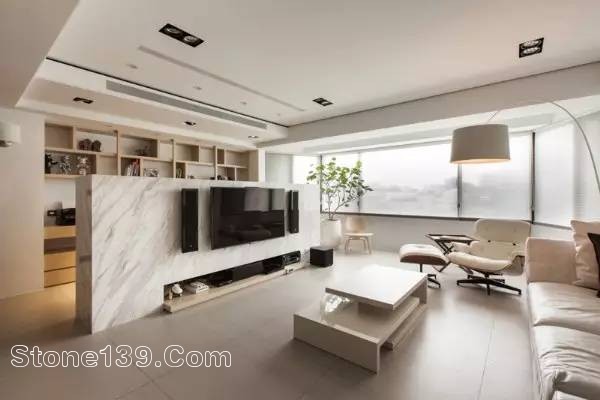 但這樣結構的房子也有它的缺陷,墻好像太少了,但你還是希望它的一切安排有序,客廳是客廳,房間是房間的,那么大理石隔斷絕對能幫你這個忙。