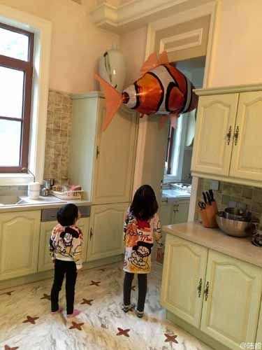 今日(12月9日)中午,陸毅在微博曬出與兩個寶貝女兒在家中玩耍小丑魚氫氣球的照片,并寫道:“看小丑魚上天入地的折騰感覺在潛水啊,貝兒說小丑魚那么漂亮為啥叫小丑魚?”天真的童言十分有趣。
