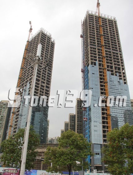 ↑圖為貴陽國際金融中心幕墻安裝進度
