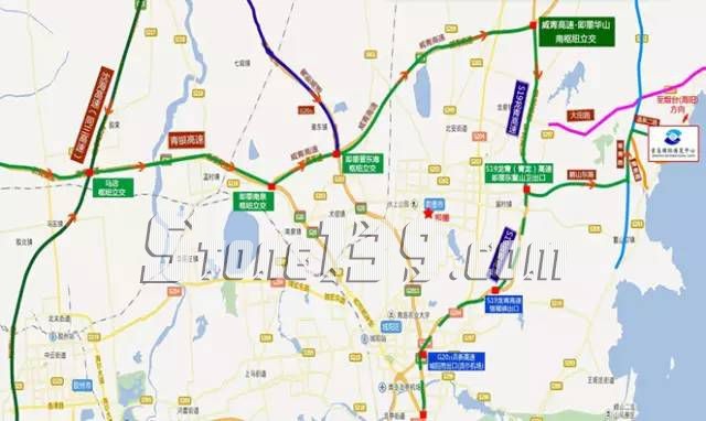 G15沈海高速(同三高速)從沈陽、上海方向來的車輛沿沈海高速---行駛至馬店樞紐立交---轉G20青銀高速(青島方向)---行駛至即墨南泉樞紐立交---轉S24威青高速(威海方向)---行駛至華山南樞紐立交---轉S19龍青高速(青島方向)---行駛至即墨東鰲山衛出口---鶴山東路---濱海大道(海陽方向)---博覽中心