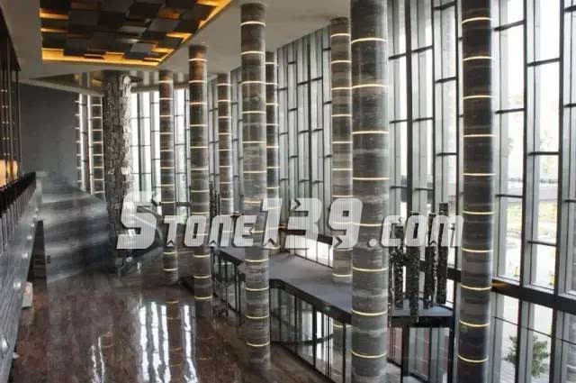 藍金沙紋路清晰,整體色感單純而又有豐富的紋理變化,沉穩大氣而又時尚細膩。應用如樓梯、柱子、臺面板、地面、墻面等。