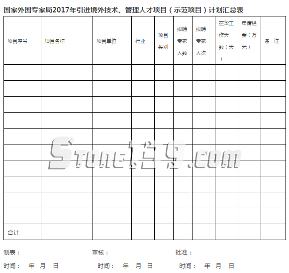 1.2017年引進(jìn)境外技術(shù)、管理人才項(xiàng)目計(jì)劃匯總表