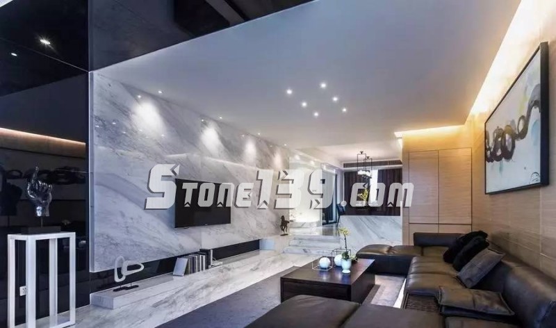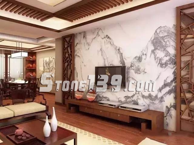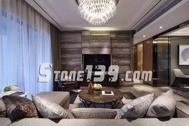 作為客廳的主視覺焦點,背景墻往往是一個裝飾亮點,天然石材花紋自然,能很好地表現(xiàn)創(chuàng)作意圖,適合在墻面上做藝術(shù)造型。