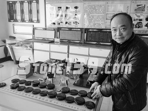 最后,王旭又向記者展示了他自己為公司設(shè)計(jì)的標(biāo)牌,標(biāo)牌的背景是一幅世界地圖,寓意公司產(chǎn)品立足中國(guó),放眼世界,他要讓中國(guó)的石頭文化走出國(guó)門,在世界大放異彩。