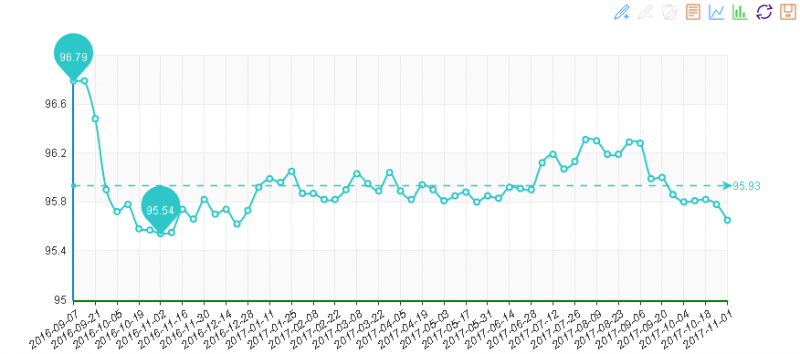 據“中國·水頭石材指數”系統監測,20171101期石材周價格指數收報于95.65點,環比下降0.13點,下降約0.14%,本周石材價格繼續小幅下跌,價格指數一路走低。本周價格變化的僅有大理石,其他石材價格僅與上周持平。本周大部分石材品種價格穩定,部分品種價格隨市場需求正常浮動調整,大理石荒料及大板價格的下跌,帶動本周石材價格呈現波動下調的趨勢。