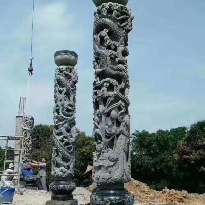 石柱浮雕 龍雕石材柱子 龍圖騰石雕